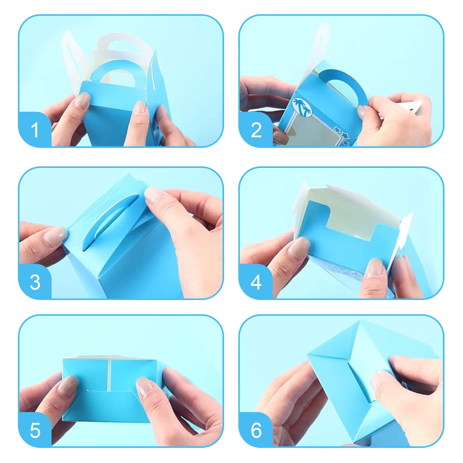 - EASY ASSEMBLY: Assembling these blue party table decoration is super easy with the help of the product's step-by-step picture guide and double-sided adhesive tape. Simply press the opposite corners to pop the box and lock the bottom in place, then use the bonus glue dots to stick the nubs to the box. This makes it super convenient for you to set up candy bags for party favors and focus on other aspects of party planning.