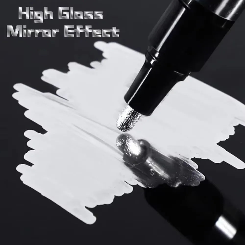 Liquid Marker -- This highly pigmented marker creates a high-gloss real mirror effect in almost all smooth surfaces such as plastic, glass, stone, or ceramic.