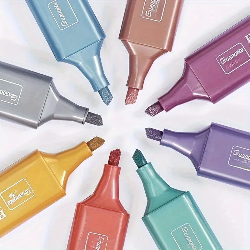 This high-quality set includes 8 fluorescent highlighters. With a smooth and vibrant stroke, these highlighters make it easy to emphasize important information in documents, books, and notes. The vivid colors are perfect for quick referencing, organizing, and studying. Enhance your highlighting experience with these reliable and versatile highlighters.