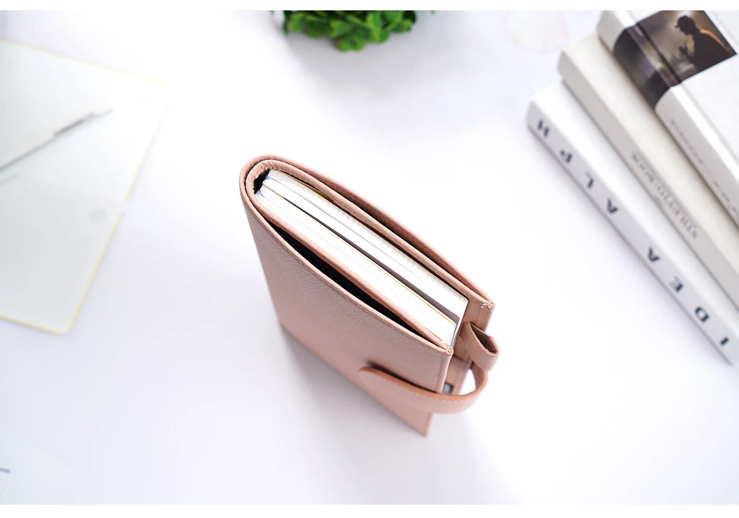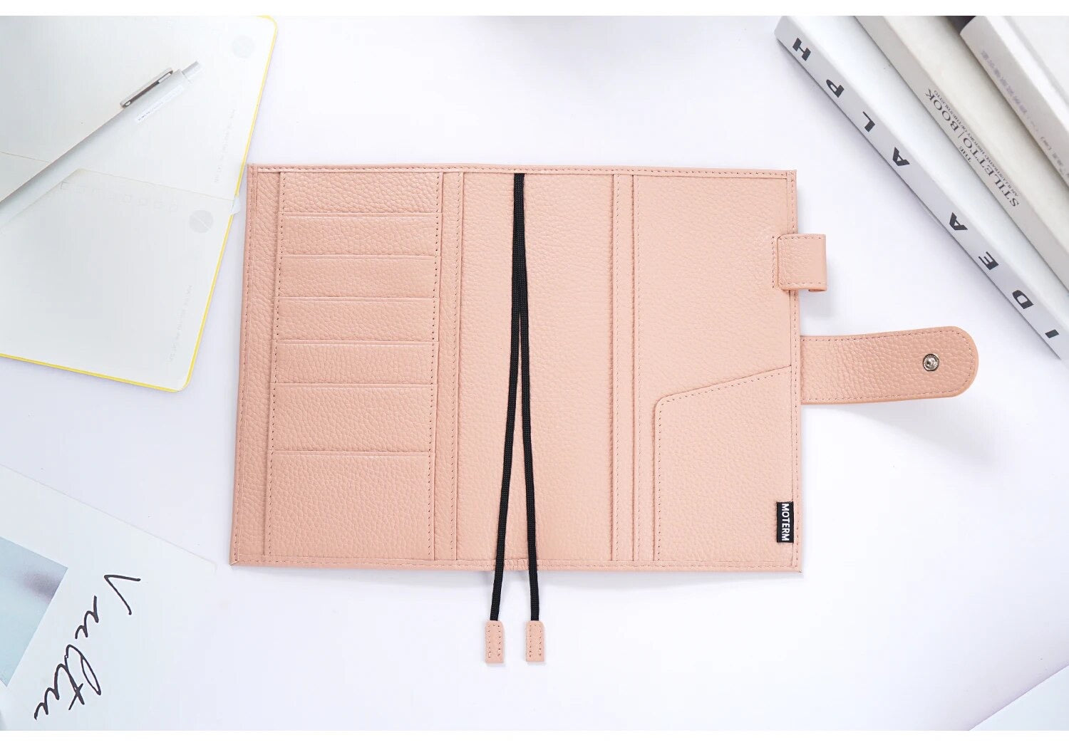 This notebook cover is especially designed for JIBUN TECHO B6 Slim (mini), but can only be used without the original Jibun PVC cover. It also can hold B6 Slim size notebook of other brands, such as MIDORI, Cafe Note and so on. Just please measure the size of your notebook, as long as its twice the width plus the thickness does not exceed 25 cm, also the height less than 18.3 cm, then it can be perfectly compatible.