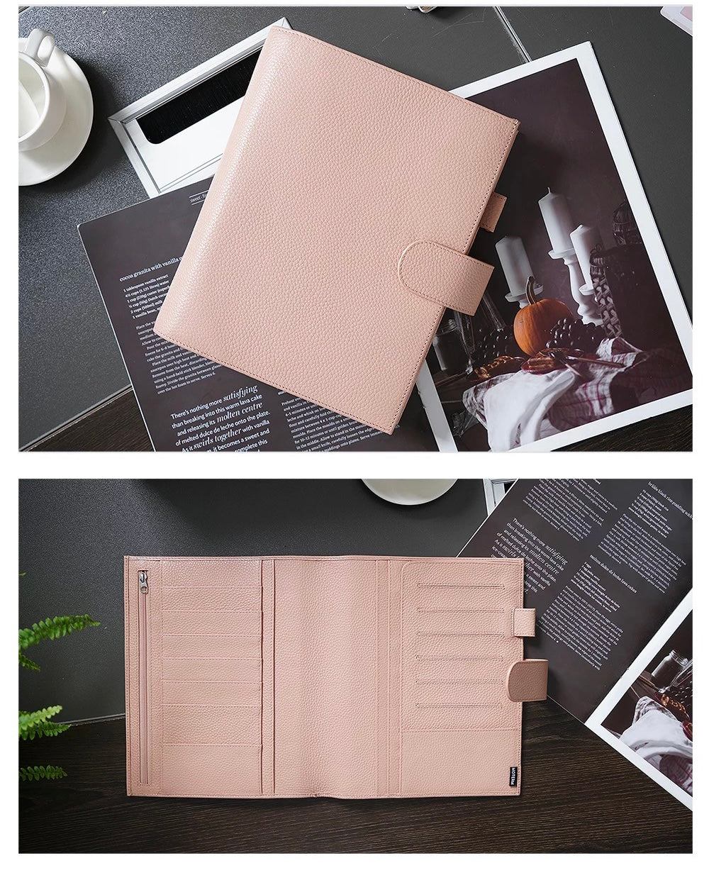 - 2 slip pocket, secretarial flap, 6 horizontal card slots,