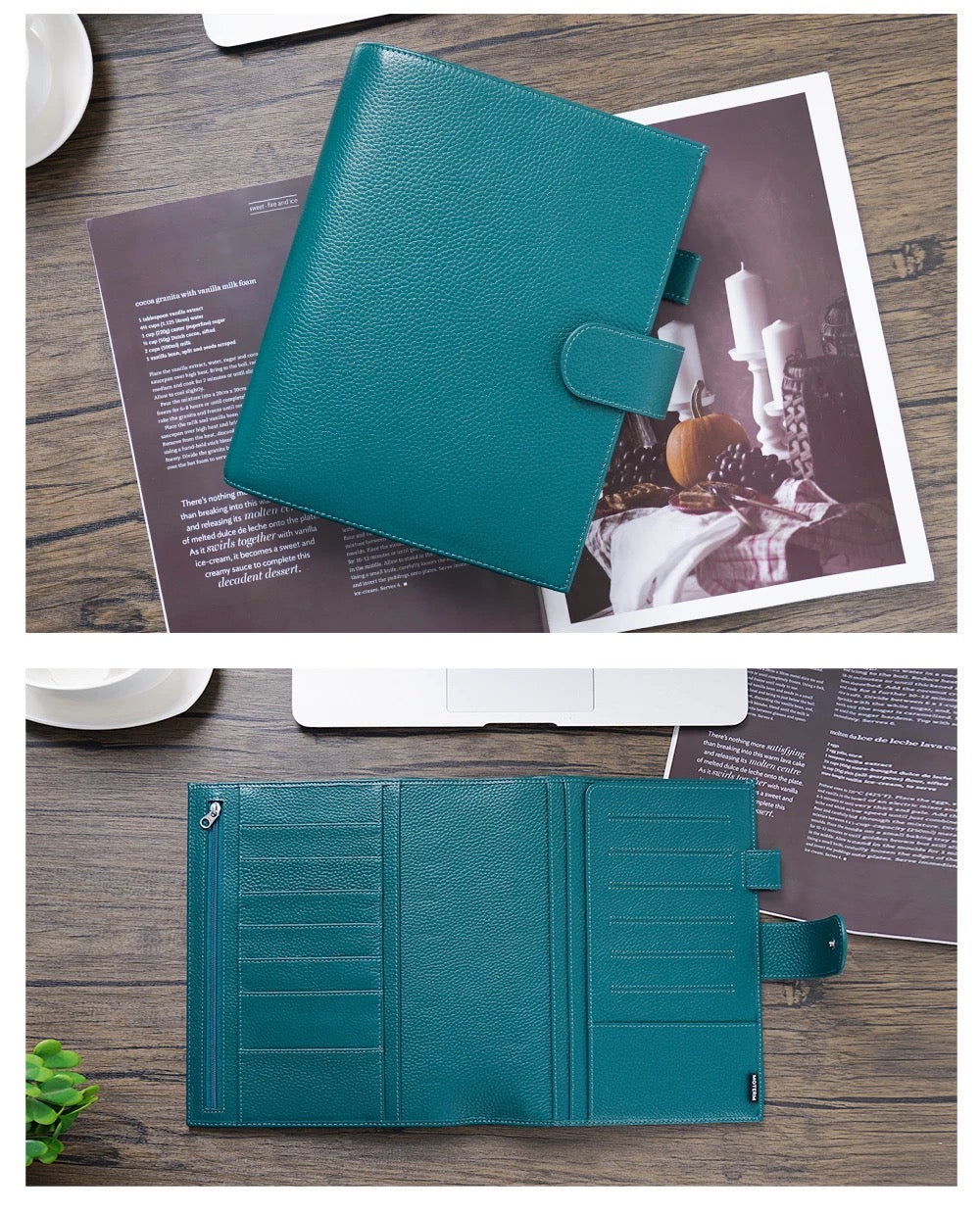 - 2 slip pocket, secretarial flap, 6 horizontal card slots,