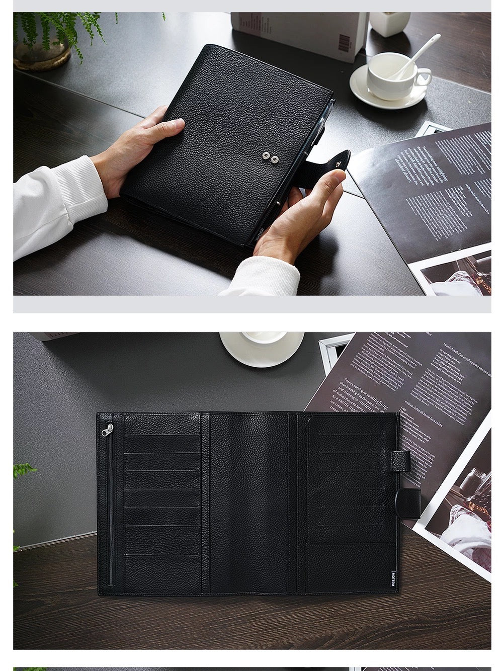 - zipper pocket, 3 slip pockets, 6 horizontal card pockets, bottom pocket,