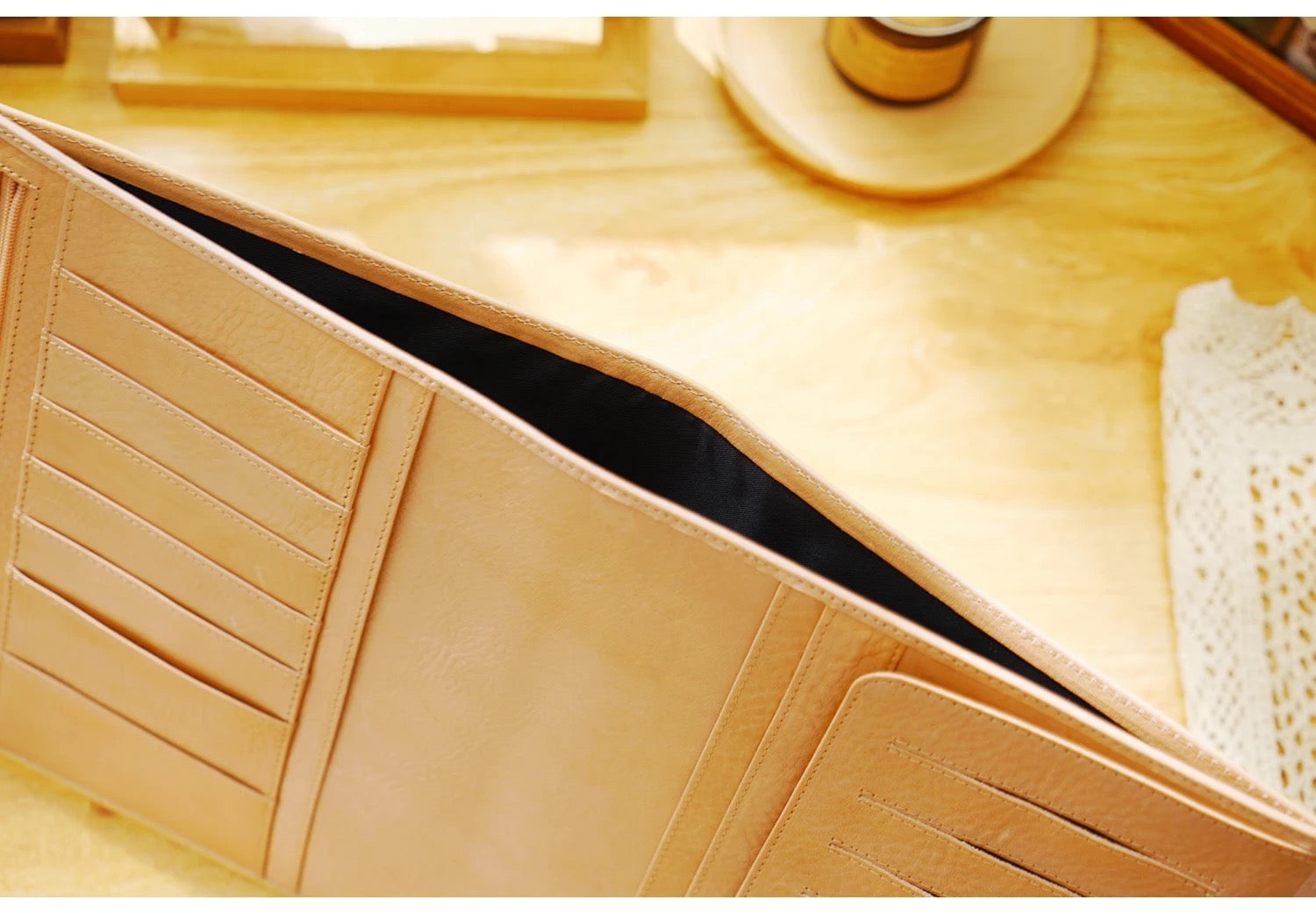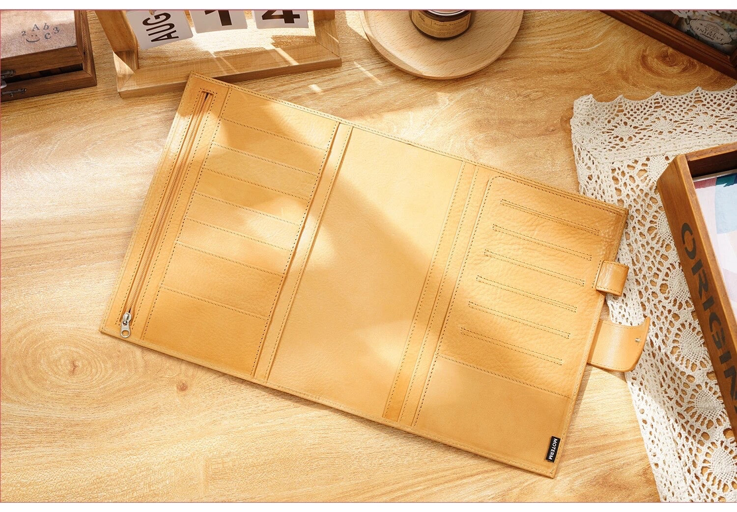 Our premium leather goods use a full grain vegetable tanned leather. It is soft and pliable. Due to the nature of being full grain, the texture of each of our planners will vary, just as the each hide will vary.