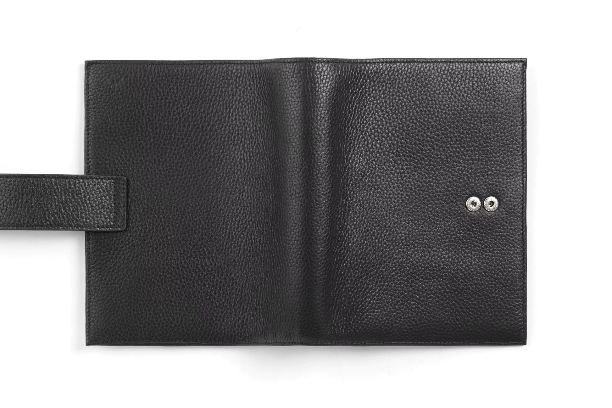 • Right: secretarial flap pocket, 2 slip pockets, 4 card pockets, outward elastic pen loop.