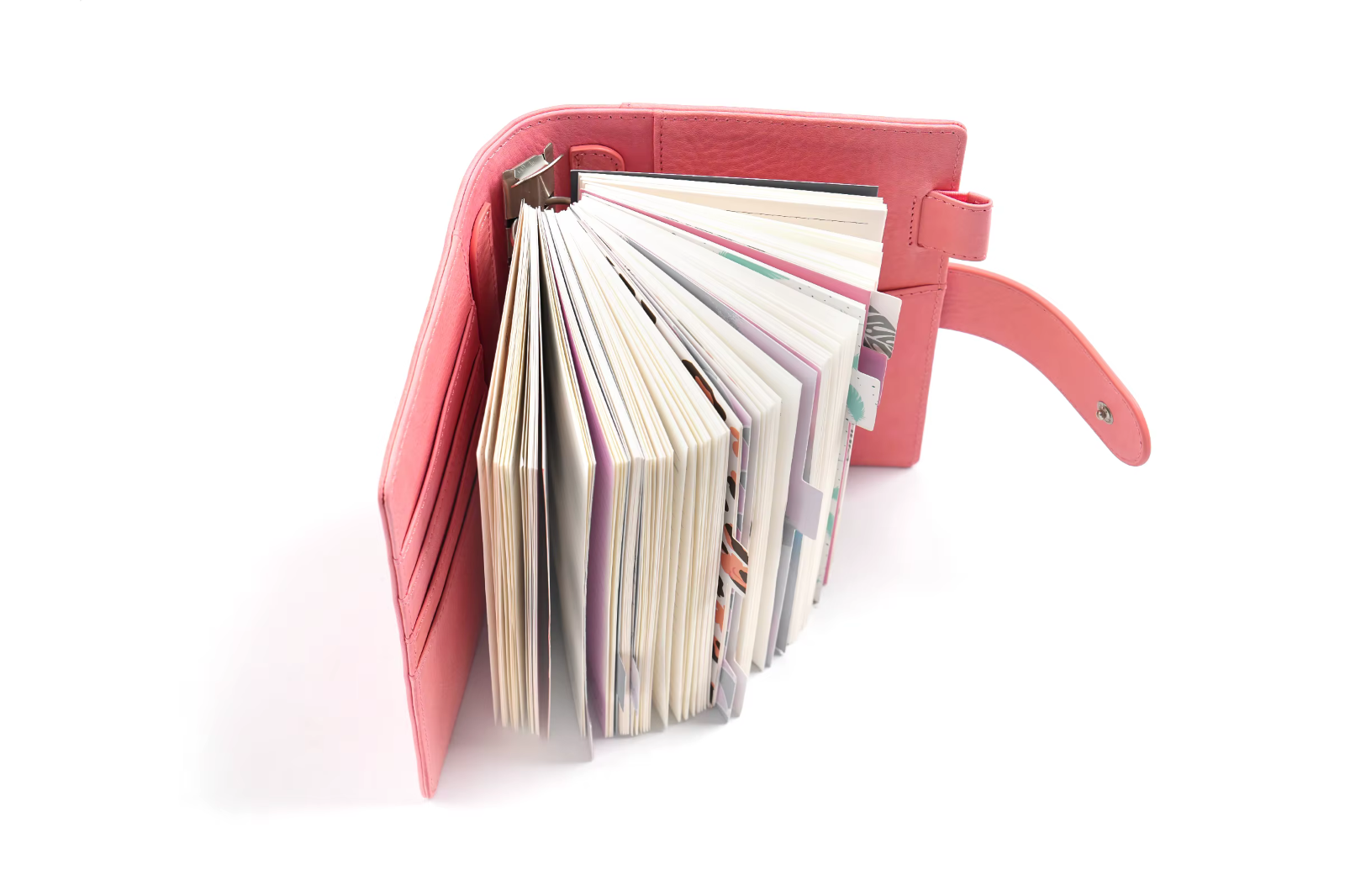 Along with your agenda and sticky notes, this organizer is equipped with a few card slots for storing business cards, cash, bills and other important necessities, making it both functional and aesthetically pleasing.
