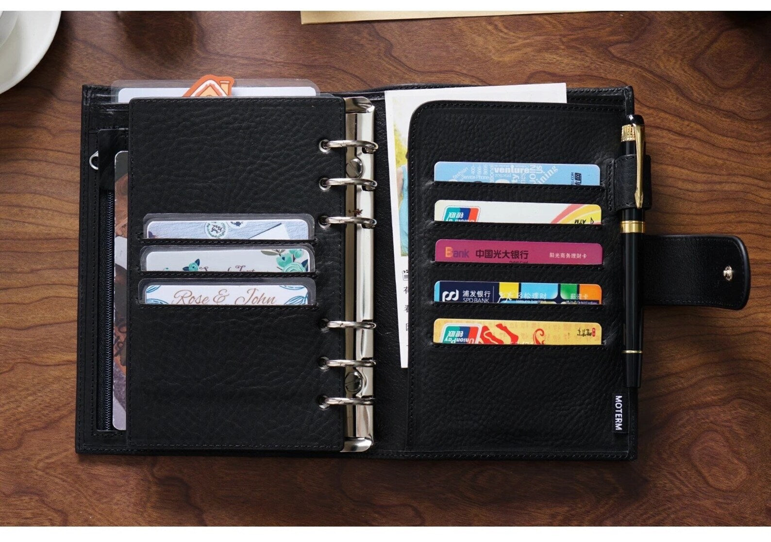 Right - secretarial pocket, 5 horizontal card slots, outward elastic pen loop, large